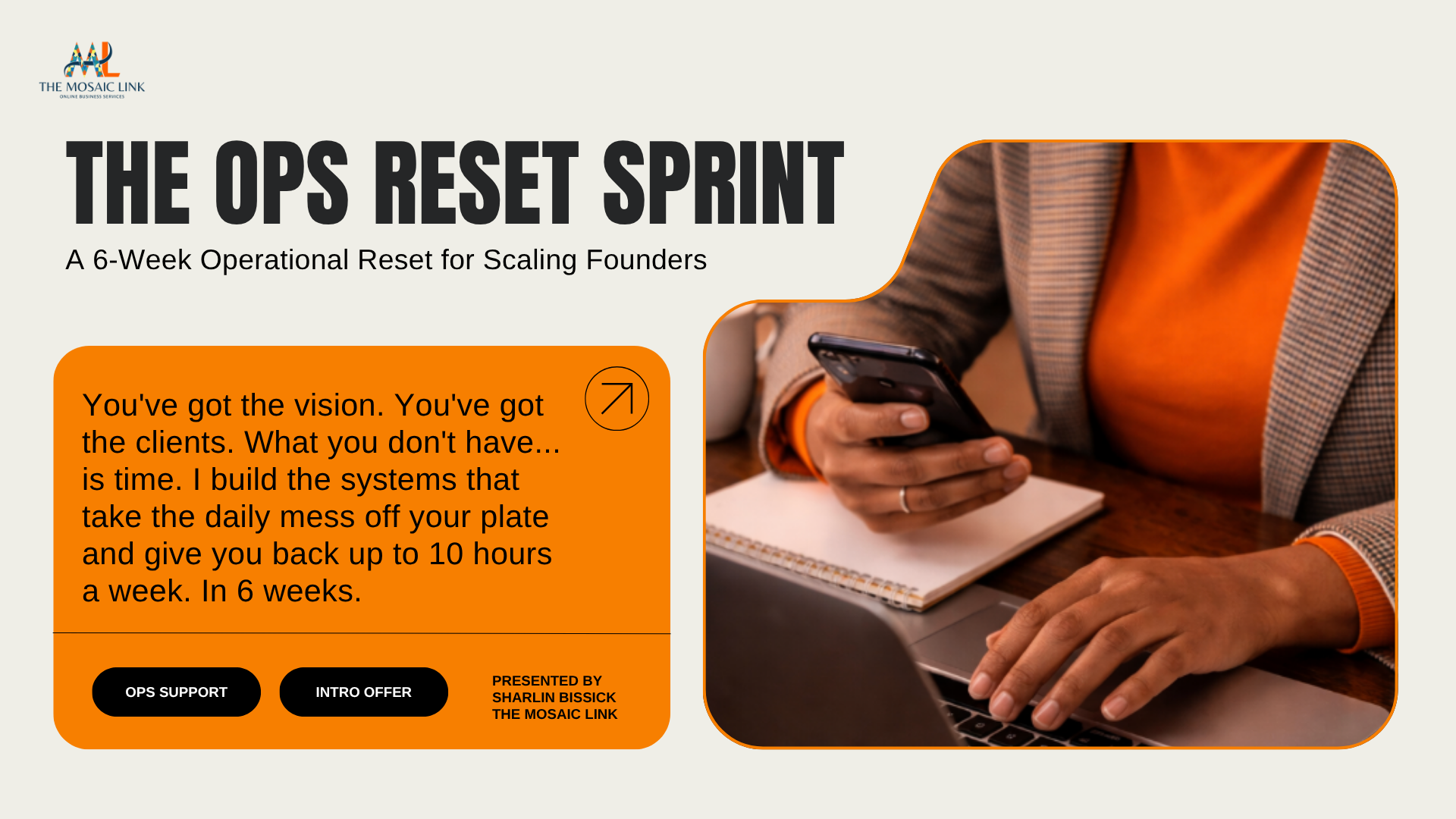 The Mosaic Ops Reset Method™ is a structured 6-week sprint that removes your biggest operational bottleneck and builds the foundation your business needs to grow.